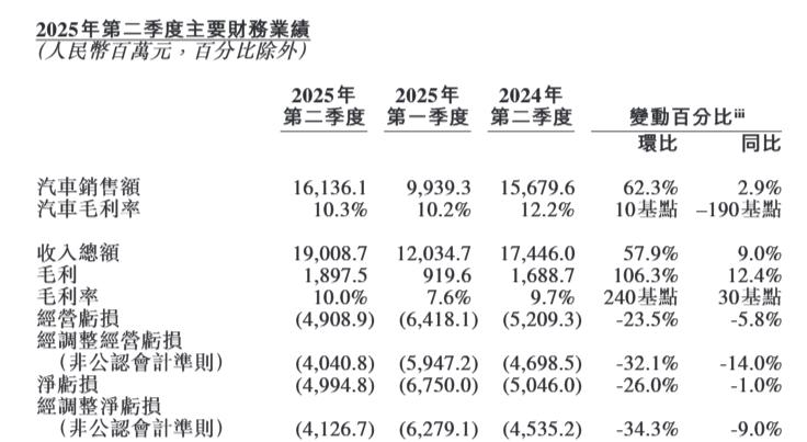 本季度实现净亏损49.948亿元,折合约6.972亿美元,同比减少1.0%,环比降低26.0%。减去股份激励开支和组织调整成本后,2025年第二季度调整后净亏损(非公认会计准则)为41.267亿元(5.761亿美元),比2024年第二季度减少了9.0%,与2025年第一季度相比降低了34.3%。