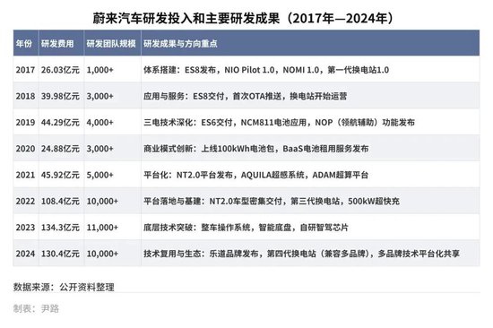 依照表格内容,自2023年起,蔚来在研发方面着力向基础技术拓展,涉及整车操作系统、智能底盘及自研芯片等方向,均投入了巨额资金,然而成效显现却十分迟缓,用户需经过较长时间的实践才能察觉其长处。尤其以整车操作系统为例,该项目动用了大量资源,但其优势的充分展现至少需要三五年时间,并且要历经两款车型的迭代更新才能实现。