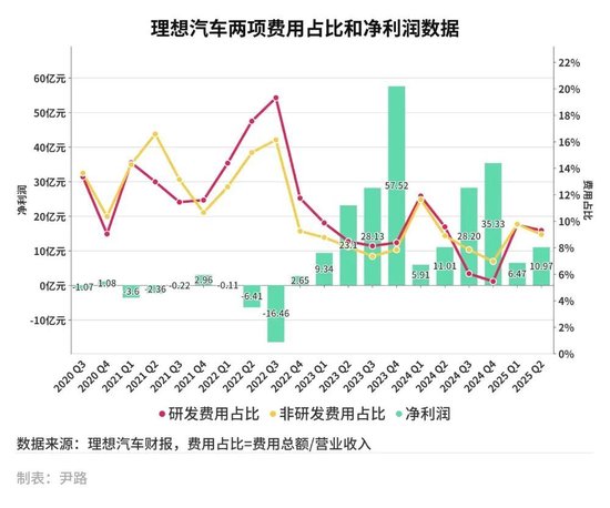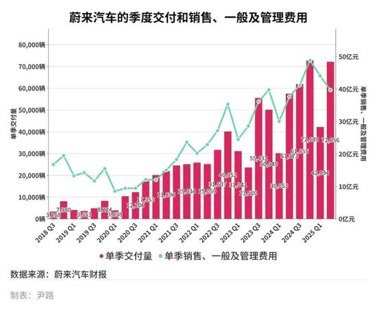 应该特别指出的是,2024年第四季度和2025年第二季度的出货量几乎相同,分别为72689辆和72056辆,然而后者在非研发开支上削减了超过9亿元。这一成果源于蔚来与乐道销售渠道的合并,单店经营效能的提高,以及乐道门店因成本较低而带来的销量增长。