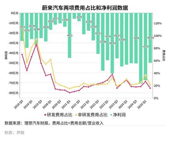 根据财务报表,蔚来的成本削减方案自2025年第二季度起初见成效。公司通过精简人员,使得2025年第二季度的整体开支较第一季度降低了9.55亿元,这一举措是削减亏损的关键因素。