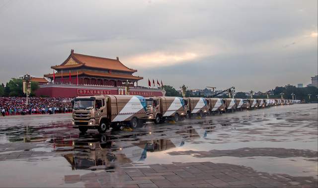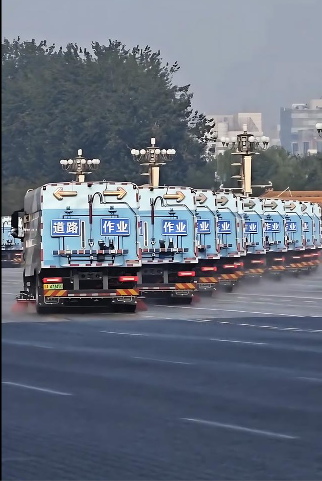 二零二五年九月三日,于北京天安门广场,隆重举行了以纪念中国人民抗日战争与世界反法西斯战争胜利八十周年为主题的庆典活动。在正式接受检阅的队伍之前,由23辆比亚迪纯电动环卫车T18构成的“绿色”队列率先登场,凭借“运行效率高、噪音小、无污染”的突出优势,顺利完成了阅兵活动前的道路清洁维护工作,为这一全球关注的盛事打造了清清爽爽的路面环境。
