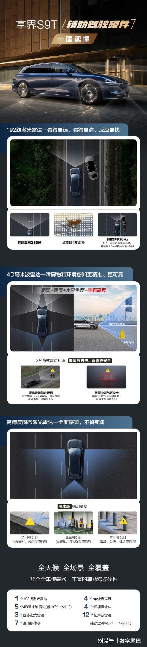 去往目的地的路上,享界S9T原配的HUAWEI ADS 4辅助驾驶系统堪称重要保障,它拥有1个192线激光雷达、3个高精度固态激光雷达、3套分布式4D毫米波雷达矩阵等总共36个高精度传感器,配合优秀的算法和软件,用户能轻松开启辅助驾驶,从自家车库到最终目的地全程获得支持,驾驶感受顺畅得如同经验丰富的驾驶员在操控,这绝对是顶尖水准的稳定表现!