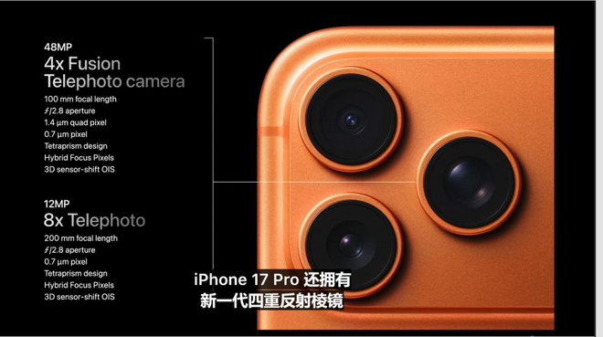 与上一代相比,iPhone 17 Pro系列的摄影能力实现了显著飞跃,它搭载了三枚4800万像素镜头,从而彻底结束了1200万像素的旧时代。