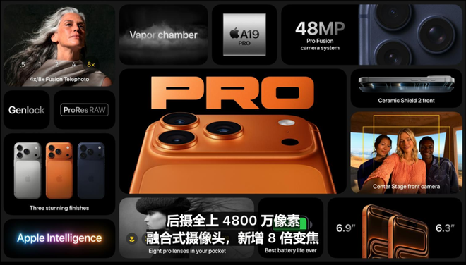 在性能表现上,Pro系列配备了A19 Pro芯片,该芯片拥有六颗CPU核心与六颗GPU核心,其稳定运行能力比iPhone 16 Pro增强了百分之四十。