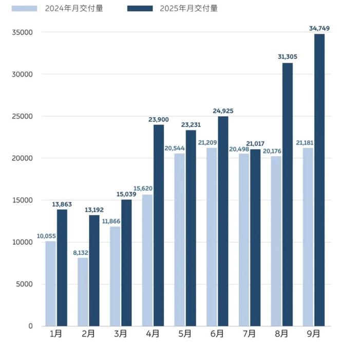 今年三月,蔚来旗舰车型ET9开始交付用户,一个月后,定位十万元级别的紧凑型车萤火虫加入产品序列,五月份,蔚来四款核心车型ET5、ET5T、ES6和EC6完成升级改款,紧接着乐道L90和第三代ES8也陆续推向市场并开始交付,整个2025年新车发布、上市和交付活动持续不断,新车型推出以及更合理的价格体系助力蔚来在今年前九个月实现超二十万辆新车下放。