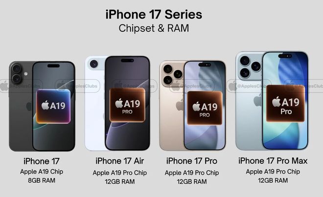 标准版,iPhone,仍旧搭载,常规的,A19芯片,内存维持,8GB,不变。Pro版本,升级,新一代,高端的,A19Pro芯片,并且内存,也会提升到,12GB。