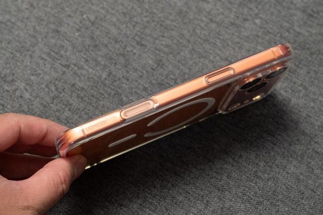那壳子的开孔,真的是极其精准,按键按下时发出令人舒适的响声,手感超棒一点也不觉得硌手,然后便是重点,那个专门为iPhone设计的拍摄键,被包得毫无缝隙,然而使用的时候,却能与裸机一样顺滑自由旋转如同丝液般流畅!若要谈及自己喜欢这种具有通透美质感发亮的TPU材质,那么绿联的这个晶透磁吸壳子,真的可以毫不犹豫地选择购买,对于手机该防护的地方都防护周全了,特别是针对iPhone 17独有的星宇橙色,从而让智能手机的本来颜色得以清晰展现,而且还特别显眼!
