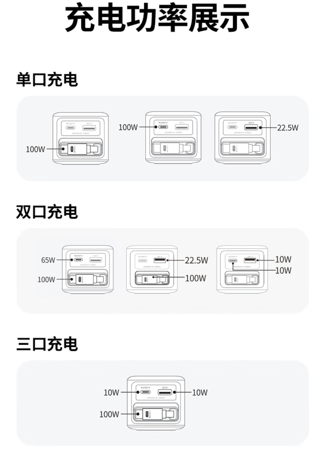 别嫌其个头小,能量着实惊人!具备100W总功率,插入笔电之时能够实现满血快充(至高支持100W PD),手机和平板插上去同样能够显著提速,其四口可一同为4个设备提供照应且不会降低速度。我一出门仅携带它这一个,便成功替代了笔记本大块头、手机充电头、Type-C线以及多条其他线!包包瞬间减轻负担,登机通过检查都愈发从容,实乃数码爱好者轻装出行极为好用的器具 。
