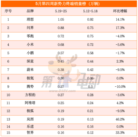 前四周的时候,零跑终端的销售数量得以达到3.79万辆,预计在5月它将会处在新势力榜单的第二位。