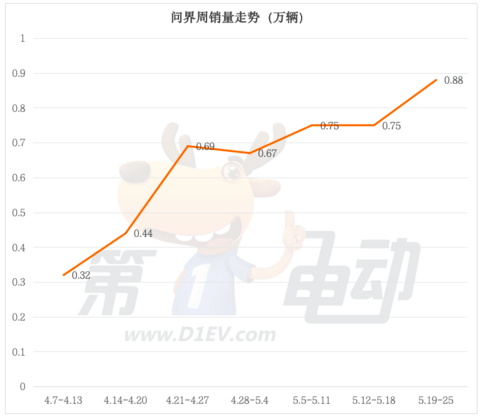 问界的周销量,正处于一种缓慢地上升态势之中。在上一周的时候,其终端销量,和上一周相比,出现了环比上涨的情况,上涨幅度为17%,并且达到了8800辆这个数量,此销量创今年以来的全新高度,成功地实现了对零跑的超越,在新势力榜单里位居第二。