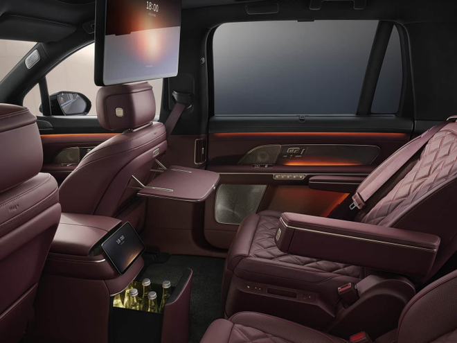座舱各处总共设置了15处飞航功能岛,还有111个实体按键,对方便用户去进行常用功能的使用而言具备便利效果。在第二排以及第三排位置,采用了柔性电致变色智能隐私车窗,其具备支持通透、遮阳、隐私这三挡调节的功能。全动态氛围灯属于标配,8.8L车载冰箱也是标配项目,二排小桌板同样是标配内容,27扬声器天琴音响系统同样属于标配。