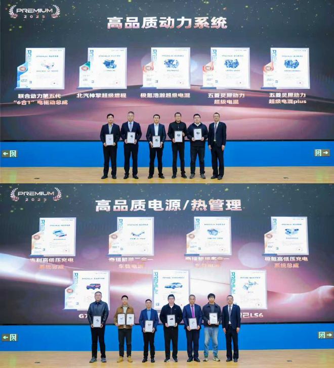 除此之外,Premium高品质系列,乃是朝着“技术巅峰”这一目标前行的验证评价系列产品,针对“新能源动力系统”与“电源”以及“热管理”等诸多系统部件,展开产品品质的评价工作,从中挑选出一批在安全品质方面堪称“行业标杆”的产品。会上,中汽中心新能源检验中心总经理高继东,为汇川联合动力第五代“6合1”电驱动颁发证书,为北汽神擎超级增程颁发证书,为五菱灵犀动力超级电混颁发证书,为五菱灵犀动力超级电混plus颁发证书,为极氪浩瀚超级电混颁发证书,为吉利高低压充电系统总成颁发证书,为奇瑞鲲鹏多合一车载电源颁发证书,为奇瑞鲲鹏二合一车载电源颁发证书,为极氪高低压充电系统总成颁发证书,为纵横G700热管理系统颁发证书,为零跑B01颁发证书,为智己LS6颁发证书。共12款产品,以上一一受到了证书颁发 。