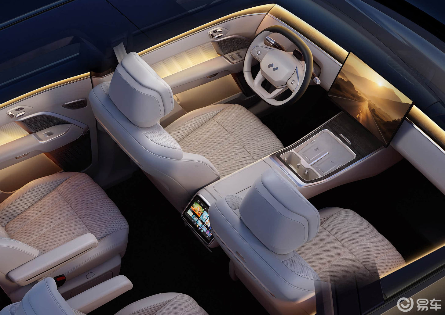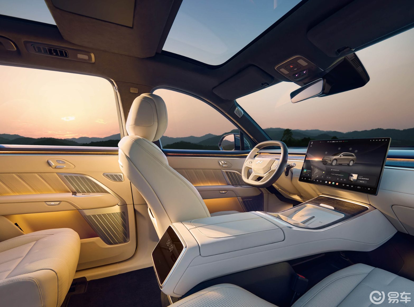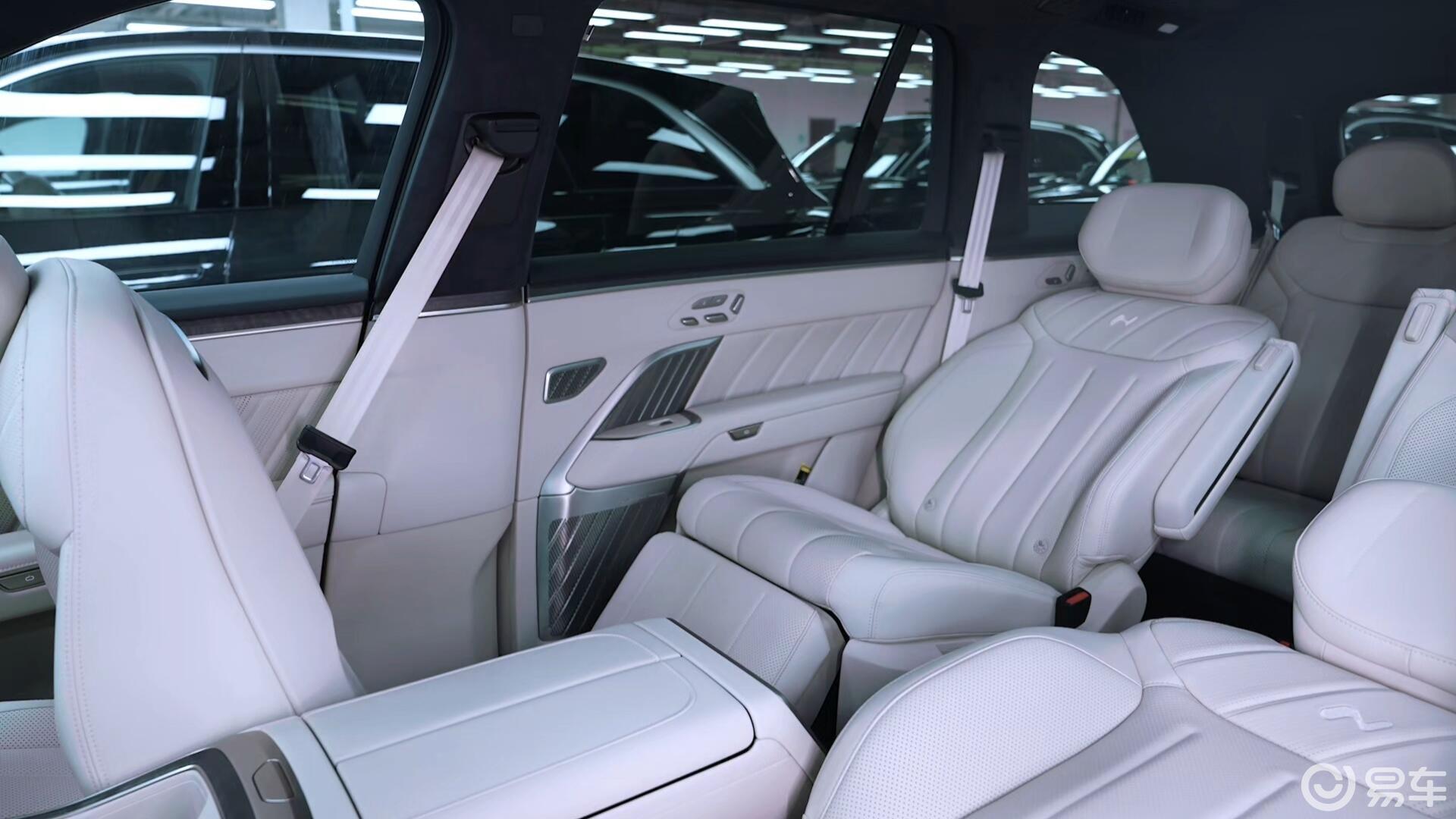 车内采用的是2+2+2样式的6座布局,二排右侧设置的是带有电动腿托的零重力座椅,预计通风功能、加热功能、按摩功能等都不会少,同时还配备功能控制屏、车载冰箱、吸顶娱乐屏、折叠小桌板、双天窗以及ONVO SOUND音响系统等配置,乘坐舒适性很明显。并且第三排座椅也支持电动调节、加热等功能。