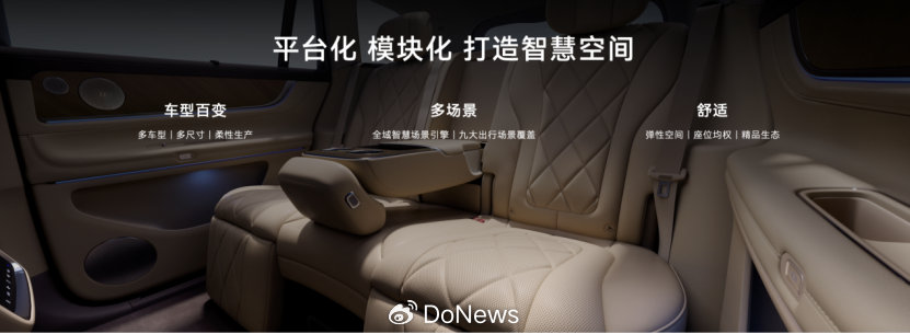 并且依靠平台化、模块化设计,达成单一平台对轿车、SUV、MPV、越野等多车型、B-D级多尺寸的覆盖以及柔性生产,同时增添主动悬架、线控后转、线控底盘、多电机等核心技术支撑,使得车内空间布局更为灵活,凭借全域智慧场景引擎,覆盖通勤、休憩、户外等九大出行场景,不管是家庭出行还是商务接待,车内空间都能够弹性扩展、随心适配。