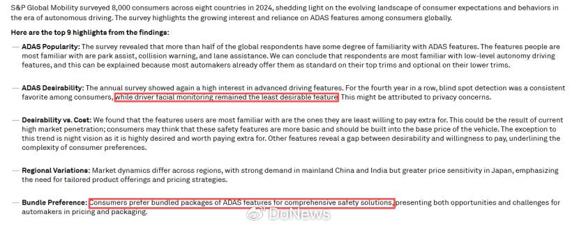 不管汽车动力形态怎样进行演进,安全一直是用户内心之中不能动摇的核心诉求,《S&P Global Mobility》针对全球8个国家、8000名消费者展开的深度调研表明,消费者不但对夜视技术付费意愿高涨,还更倾向于打包购买ADAS功能,以此来获取全面安全保障,这一趋势深刻地揭示了市场深层逻辑,消费者愿意为更高安全标准支付溢价,而这恰恰是豪华车价值的根基 。