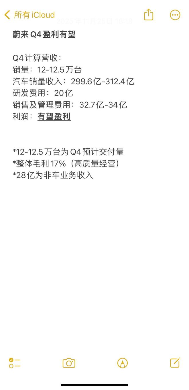 进入四季度展望时,蔚来给出了交付指引,此交付指引创了历史新高,并且蔚来给出了结业营收指引,这营收指引在所新势力里位居首位。联系Q3经营态势,要是能持续当下的“量利齐升”节奏,那么蔚来具备期望能够按照预期的时间顺利达成盈利目标。这不但会变成公司发展进程里的关键里程碑,而且还会给新能源汽车行业树立打造出“高质量发展”的典范。