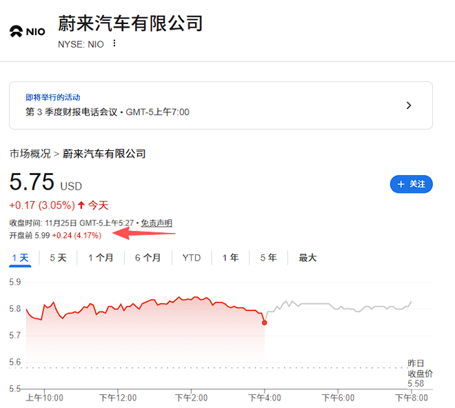 财报公布之后,蔚来美股盘前一度涨超9%。