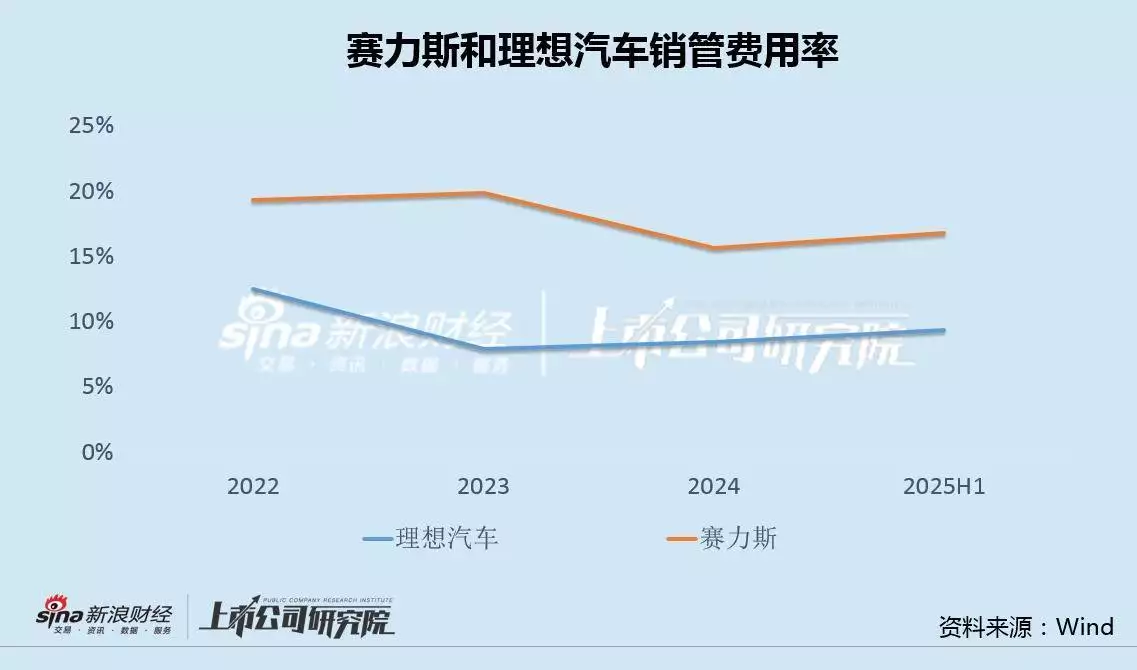 于2025年的前三季度期间,赛力斯的营收增速显著下滑,净利增速同样明显下滑,尤其是在第三季度时,盈利情况甚至出现了同比下降的态势。实际上,赛力斯的销售费用率远远超过理想汽车,其管理费用率也远超理想汽车。并且,因向华为采购以及渠道合作等诸多事项,大大地增加了成本。