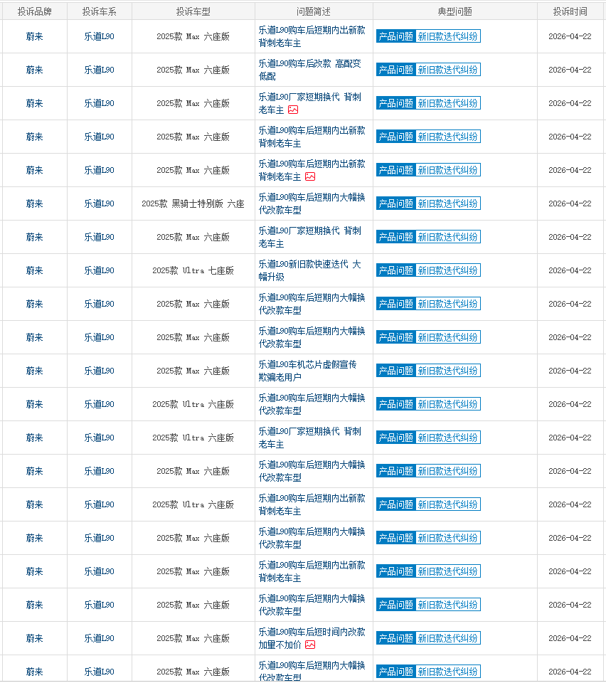 当下,于车质网等汽车投诉平台,【下载黑猫投诉客户端】,多位乐道L90老车主投诉,2026款乐道L90技术大幅迭代致使自身车辆严重贬值。并且,旧款车型所承诺的“硬件可迭代升级”未得以兑现,老车主即便愿意付费,亦无法升级激光雷达及相关智驾硬件。