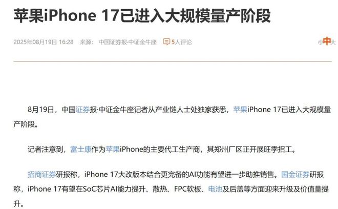 国行iPhone17系列由国内郑州富士康负责生产制造,所以不必担忧会购得印度组装的这款新iPhone。