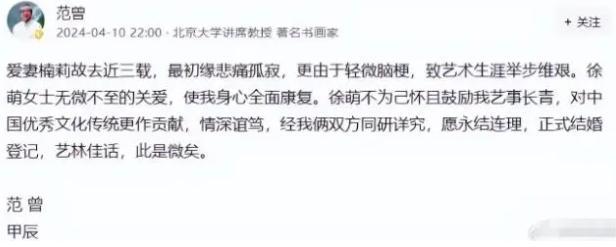 今年四月十日,网上突然出现范增再婚的消息,这个消息很快在众多媒体和社交平台上传播开来,引发了大家的广泛讨论。