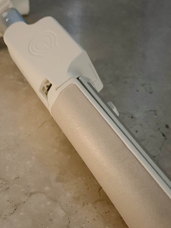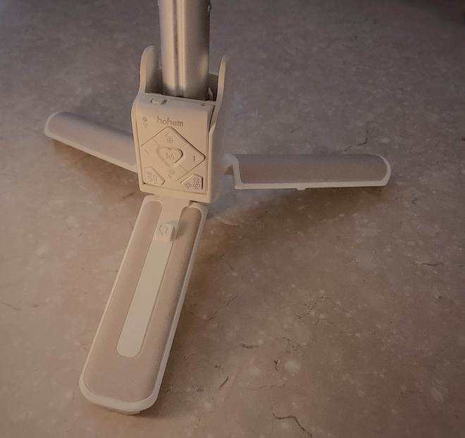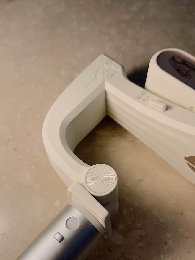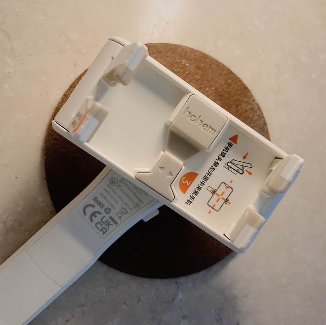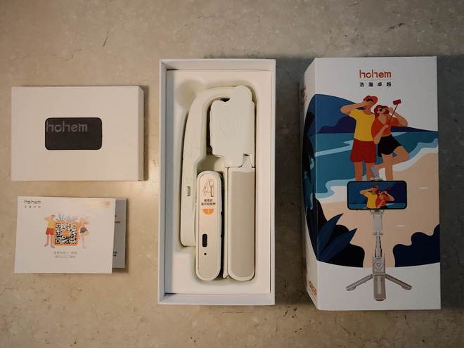小Q稳拍杆的外表十分出众,通体呈现柔和的米白色调,轮廓线条平滑而干净利落,主要由五个核心组件构成,分别是支撑用的脚架,可以调节长度的伸缩杆,操控用的遥控装置,实现转向的臂杆旋转接口,以及固定手机的夹具。