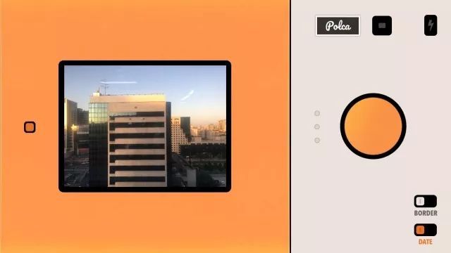 取景器左侧的细小暗点负责切换镜头模式。屏幕右上方的 Polca 图标点击后会立即导向官方 Instagram 页面。右侧的两个按键,一个用于访问相册,另一个控制闪光灯。右下方设有两个调节项,一个调节边框样式,另一个设定日期显示。