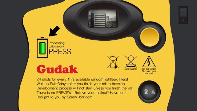 为了让用户体验更贴近真实胶片相机,Gudak 不仅在拍摄界面进行了高度仿制,其模拟胶卷的设定也极为接近传统相机,单次可记录24张影像,完成一卷的拍摄后,必须等待一个小时才能继续拍摄下一卷,而拍完的胶卷还需要三天时间才能完成“显影”过程,最终呈现出照片效果。