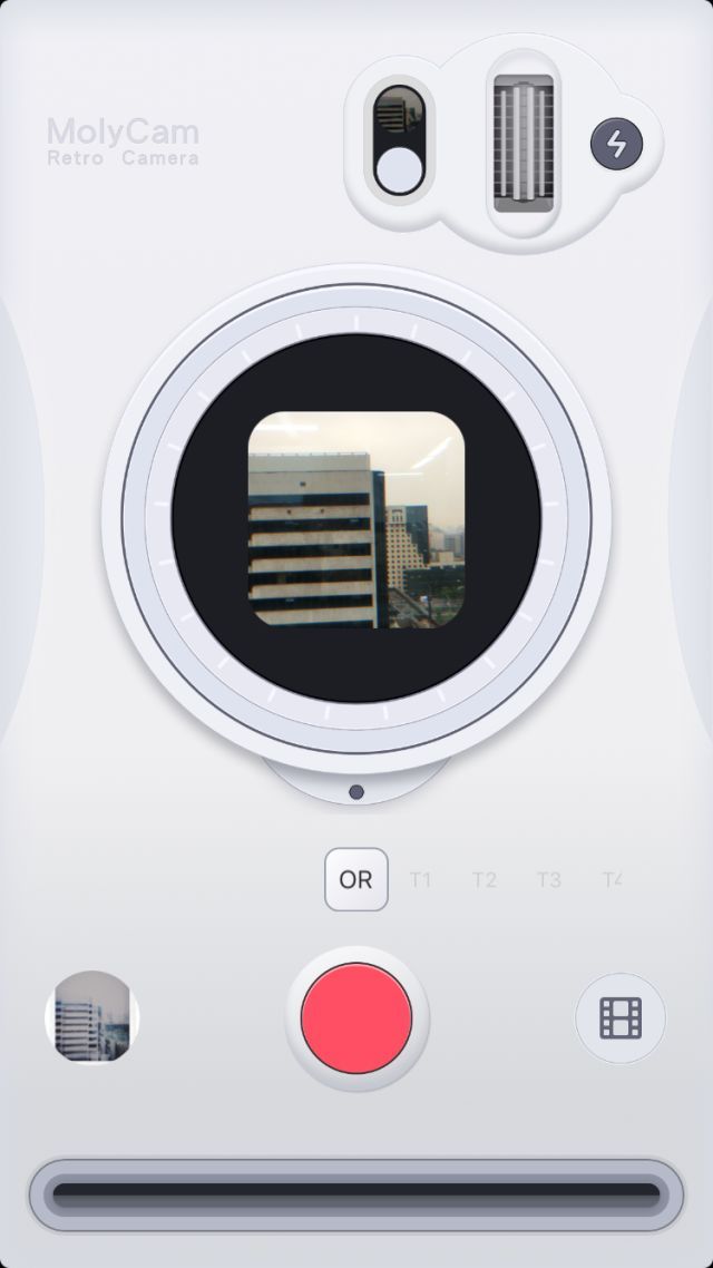 MolyCam的拍摄界面类似即时成像设备,取景区域明显小于POLY,感觉外观吸引人但实际效果欠佳。