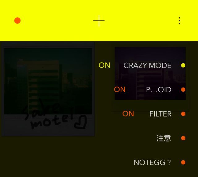 PLOT的特色在于它内置了一个“狂野模式”,一旦启动,调整界面就会从素色转为亮黄,拍下的照片会随机叠加色彩过度饱和的特效。接下来的两项设置,一个是取消照片底边的装饰线条,另一个是废除所有附加的视觉滤镜。