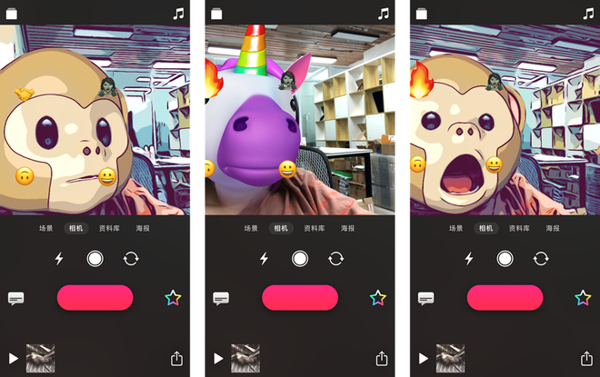 这款应用同样适用于苹果系统,或许许多人不太熟悉,它基本上将短信中的各种贴纸、特效以及大头照等元素集中管理,用户可以拍摄视频并保存到手机相册里。
