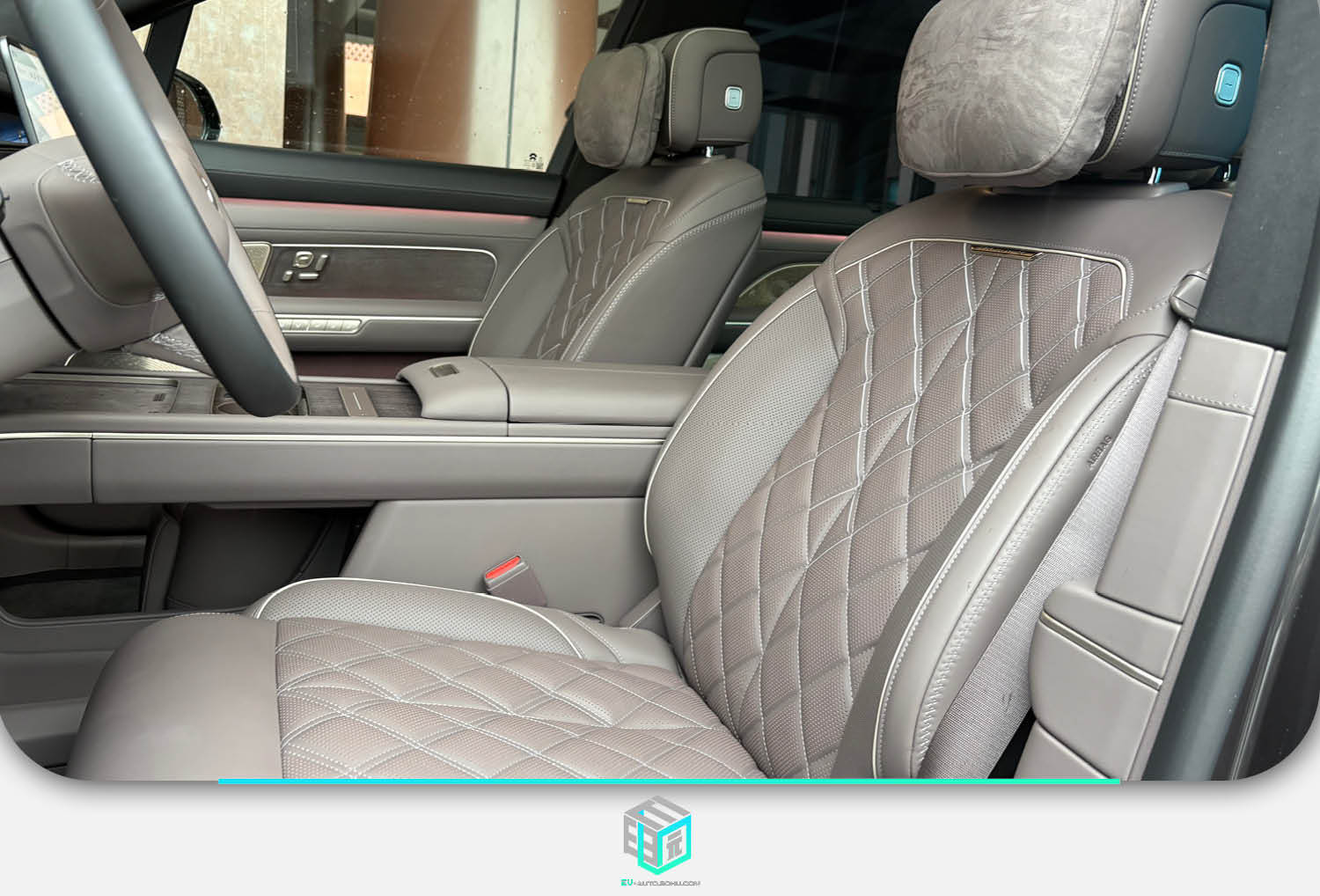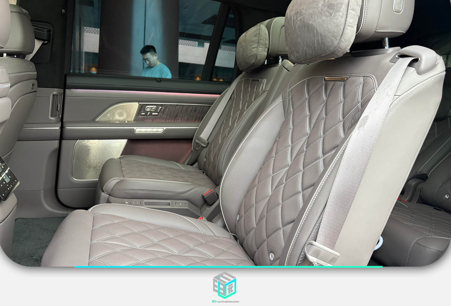 车辆在体型上有所扩展,长度为5280毫米,宽度为3130毫米。它采用了标志性的悬浮车顶设计,并配备了宽阔的平面侧窗,整体外观呈现出修长而优雅的风格。在接待状态下,空气悬挂能在7秒内下降50毫米,为乘客带来类似商务车的舒适上下车感受,每一个细节都透露出高级感。
