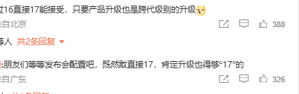 另有一些网友表示,大家先等等发布会的配置信息,既然敢于直接公布17,那么后续的升级幅度也必然要达到“17”级别的。