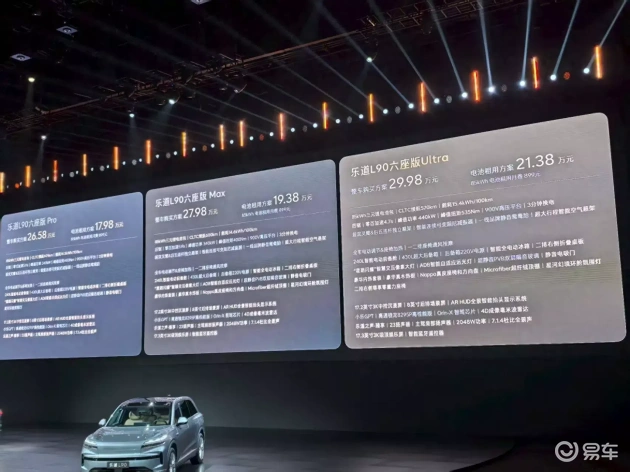 蔚来汽车此次可谓倾尽全力!2025年7月31日,乐道L90正式发售,这款新车以智能宽体旗舰SUV为类型,是乐道品牌推出的第二款车。此次一共推出了六种不同配置的车型,座椅排布方式包括六座和七座两种选择,六座车型的售价范围在二十六万五千八千元到二十九万九千八百元之间,采用租赁电池的方案价格区间为十七万九千八百元到二十一万三千八百元,七座车型的价格区间为二十七万一千八百元到二十九万九千八百元,租赁电池的方案售价为十八万五千八百元到二十三万三千八百元,并且计划在九月正式开始向客户交付车辆。