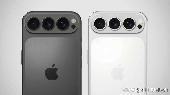 根据流出的设计图纸显示,iPhone 17 Pro机型和iPhone 17 Pro Max机型都采用了横向大镜组搭配下半部分玻璃拼接的工艺方案,镜组内部维持三摄像头配置,而LiDAR传感器与闪光灯则被布置在镜组最右侧位置,以此构成对称的视觉构图。