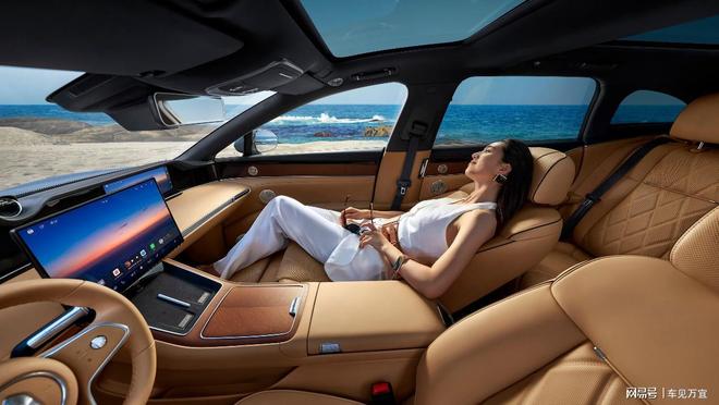 一坐到操控台前,那16.1寸的中控大屏和旁边副驾驶的影音系统带来的现代感十分强烈。副驾驶的座椅可以快速调整成舒适倾斜的姿势,同时车辆配备的温控箱能够实现零下六度到十度的制冷效果,以及三十五度到五十度的制热功能,方便随时享用冰镇饮料或热饮,让人感受到十足的尊贵体验;另外二十五声道的华为悦彰高级音响系统加上无需麦克风的卡拉OK功能,无论是在行驶途中,还是户外聚会时,都能立刻将汽车变成流动的音乐厅。