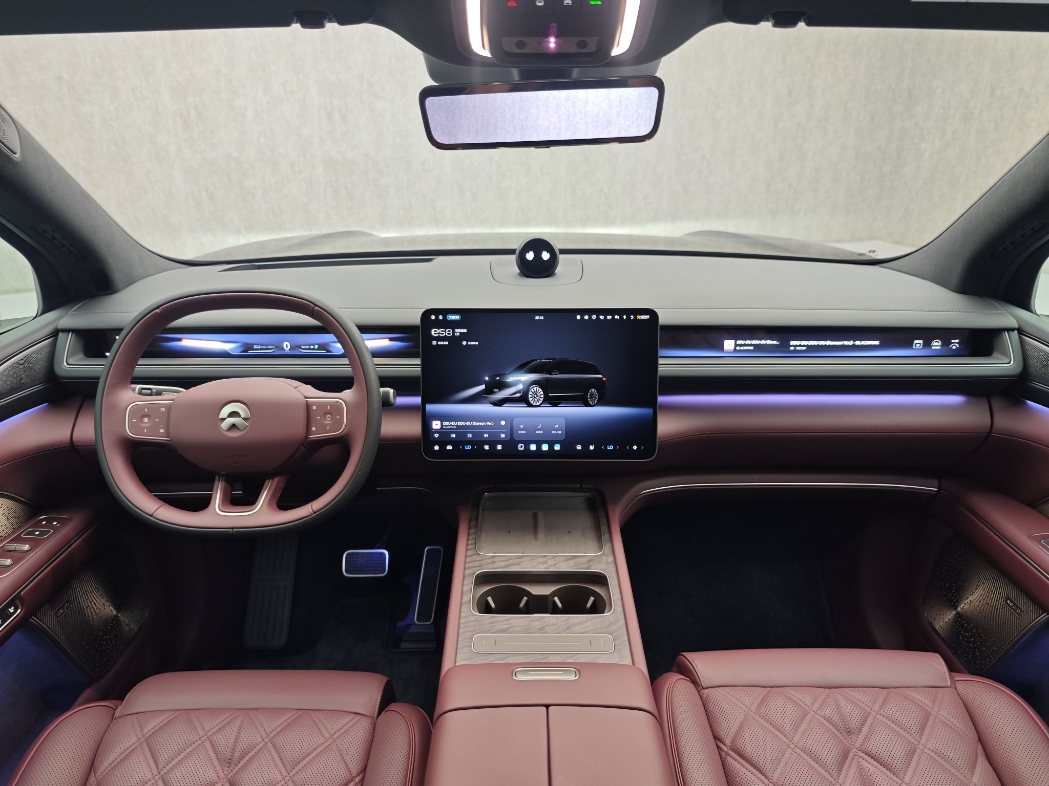 内饰部分,全新蔚来ES8也进行了整体革新,提供四种不同的内饰风格。它采用了旗舰轿车蔚来ET9所使用的相同中控布局方案“天际线”,设置了一块超过1.4米长度的Mini-LED横向联屏,并配有AR-HUD、Touch-Bar触控岛等配置,与15.4英寸悬浮式竖置中控屏搭配,共同营造出强烈的科技氛围。空调送风口采用嵌入式设计,方向盘选用三辐造型,换挡机构设置在驾驶台中央位置,车身装饰包含宽大的金属音响面板、木质纹路饰板、具有水镀PVD工艺的实体按键,以及环绕车厢的灯光带系统,整体造型展现出极简的奢华风格。