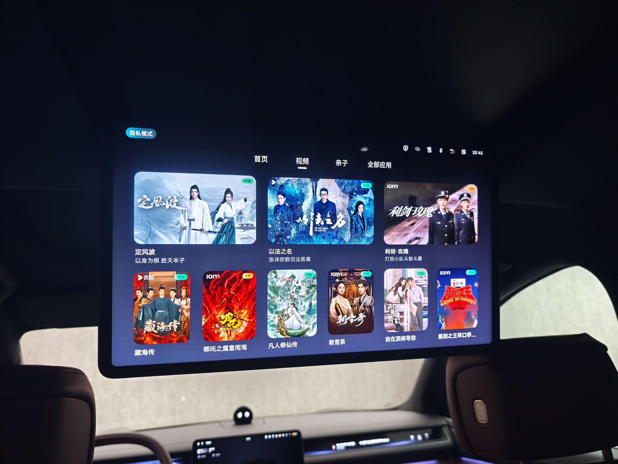 驾驶舱内部便利设施,全新蔚来ES8设有21.4英寸Mini-LED顶置显示屏,具备1000尼特强光表现力,并支持杜比视界技术,确保影音观赏效果;后座区域设有双LED可折叠镜面,同时提供容积达8.8L的零下2度冷藏箱体,配备27个发声单元的音响系统,智能分区温控装置,以及可自动调节的隐私车窗等高端装备。