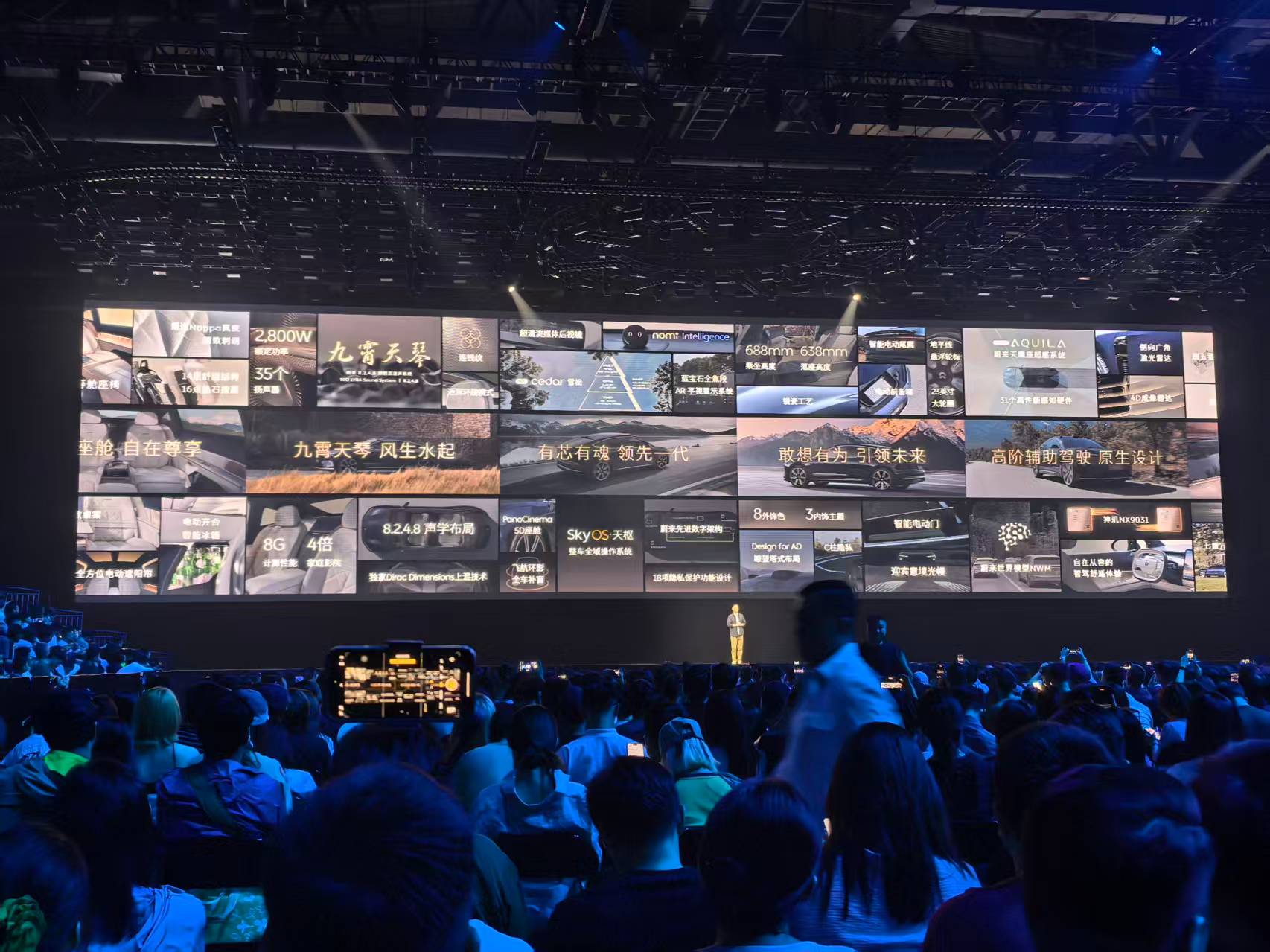 音响系统方面,全新ES8搭载了天琴沉浸式音频配置,其声学构造为8.1.4.2布局,配备了27个发声单元,总功率可高达4082瓦,音频处理芯片运算能力达到6G级别。该车型创新性地应用了Dirac RRAM超境临场技术,能够再现经典录音棚、顶级演出场地以及金色音乐厅的声场氛围。此外,全车搭载了21.4英寸的汽车级mini-LED天幕显示屏,获得了杜比视界与杜比全景声的双重认证资格。