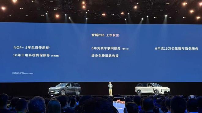 NIO DAY活动期间,我感到惊讶的是,全新ES8电池租用计划并未以29.98万的价格触及价值上限,而是真的减少了1万,最终定价为29.88万,全场响起的“斌神”欢呼正是对蔚来诚意的回应,小订用户结合5000元抵扣10000元的优惠,使得这款大型豪华纯电SUV的购买门槛降至29.38万。此外蔚来为今年购车者配备了由舒适软枕、第三排侧窗遮阳帘、簇绒脚垫、前备舱储物垫以及香氛瓶组合而成的五件套,同时提供十年三电系统保修、六年或十五万公里整车保障、六年期间每月八GB免费车联网服务、终身免费道路救援,并且包含五年免费NOP+使用权限,这些都将随车一同交付。