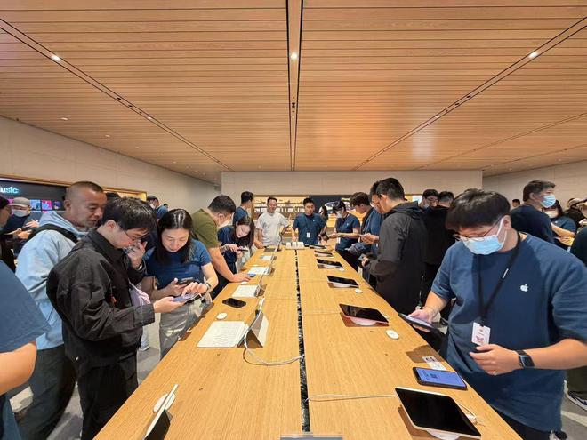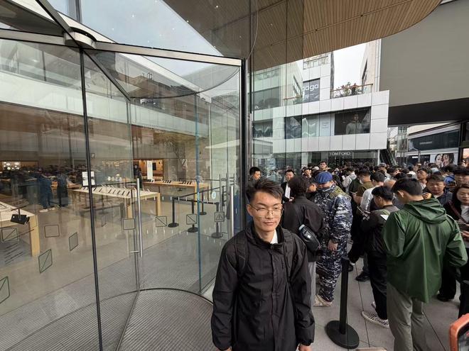 店内网易数码采访到首位去苹果三里屯店排队的人,他来自唐山,是苹果的忠实爱好者,前晚11点就到三里屯店门口等候,晚上没怎么睡觉,他解释说选择买今年的iPhone17系列,既是为了庆祝自己20岁,也觉得这个系列升级幅度很大,所以决定换新机