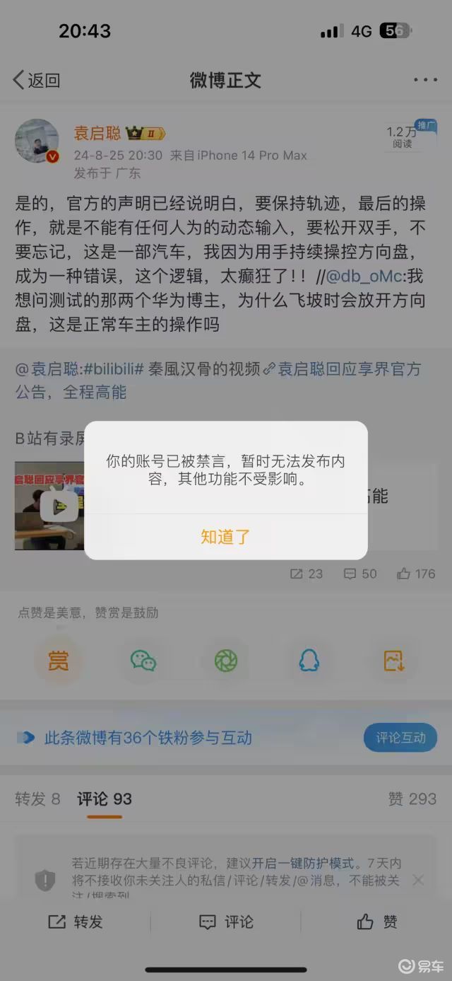 关于@袁启聪 被全面禁止的情况,其体验享界S9环节的规范程度难以确认,真相需要他自己说明白。然而,在汽车行业竞争变得越来越激烈的情况下,许多汽车制造商开始重视评测领域的公平性和公开性,测试本身就是一个充满各种不确定性的环节,任何一个环节的变化都可能影响最终的数据,因此保证公正透明合理是进行测试的基本要求。当今资讯泛滥的社会,每个人都要对自己的言论和行动负责,特别是在具有相当影响力的公共平台上,汽车评论专家更应当成为表率,凭借深厚的专业素养和客观公正的心态,为购车者提供有意义的参考信息。