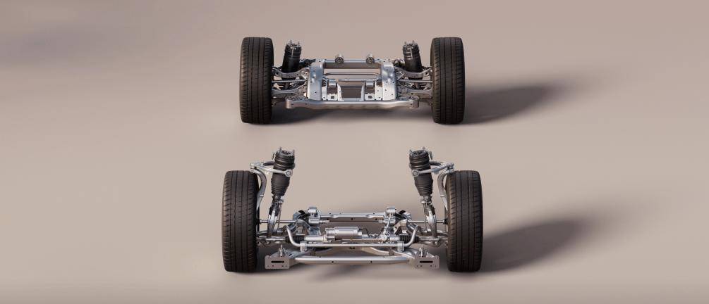 动力电池系统,乐道L90全系列均搭载了85kWh的电池单元,后轮驱动版本按照CLTC标准测试,行驶里程能够达到605公里,而四轮驱动版本的最大续航距离为570公里。在底盘构造方面,乐道L90选用了前部双叉臂式和后部五连杆式的悬挂系统,装备了行程达到100毫米的空气悬挂装置,以及能够智能调节阻尼的CCD减震设备,配合20英寸的轮圈和特别宽大的轮胎,有效提升了车辆的行驶稳定性和操控表现。
