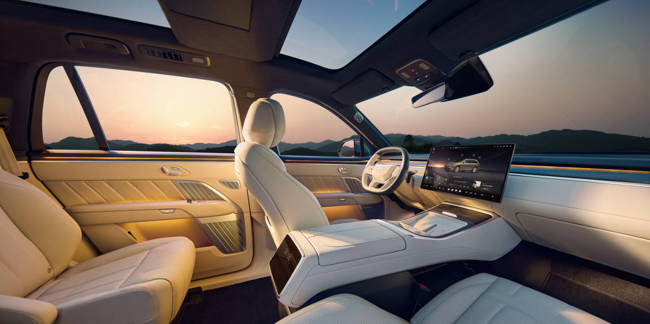 该车配备容积达240升的电动前备箱,为国内同类车型之最;车身长度超过5.1米,轴距超过3米,因此可选择六座或七座版型;六座版型内部空间宽敞,可容纳9个标准尺寸行李箱,外加1个儿童行李箱;这一设计有效解决了以往三排座SUV常见的“乘坐空间充足但行李装载能力不足”的问题。