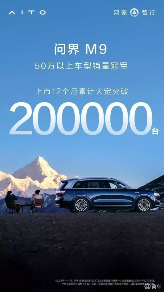 问界M9面世满一年,在市场表现上获得了广泛认可,地位无可撼动。这款车连续八个季度占据中国五十万以上价位豪车销量榜首,表现始终领先于ABB品牌,并且其销量超越了榜单上另外二十个车型的总和。以2023年为例,宝马X5L全年销量为九万三千八百五十七台,而问界M9仅用半年的时间就卖出了超过十万辆。问界M9上市仅一年,就在五十万元级别所有车型中占据了三成比例的销量。到了2024年岁末,大定车型二十万量的销售业绩,明确地跨过了豪车领域那个最难逾越的门槛。