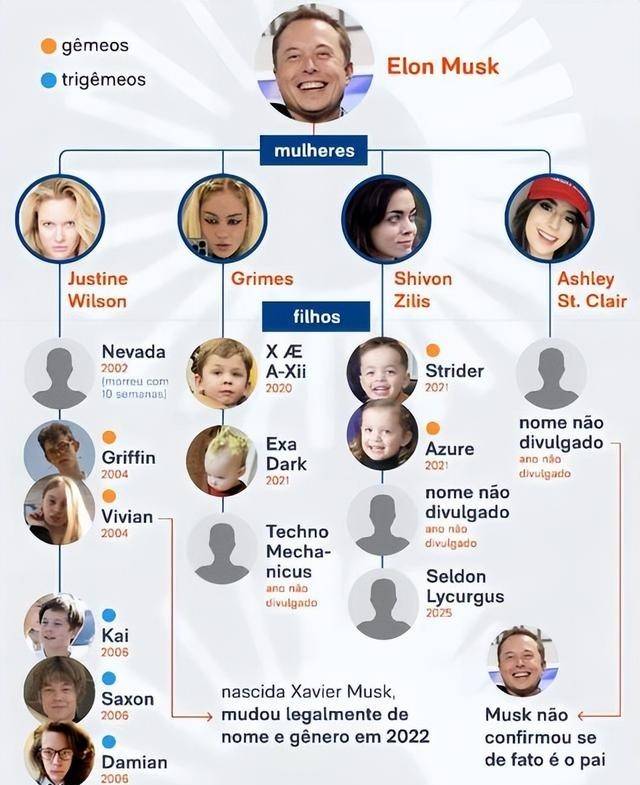 2025年2月,网络名人艾什莉·圣克莱尔诞下一名男婴Romulus,四月份进行遗传学分析后,结果显示出马斯克是孩子的亲生父亲的可能性高达99.9999%,她随即向司法机构提出建立亲子关系的请求,同时,关于她与另一位前特斯拉高级管理人员的私生活信息,将在2025年《华尔街日报》的文章中详细披露。