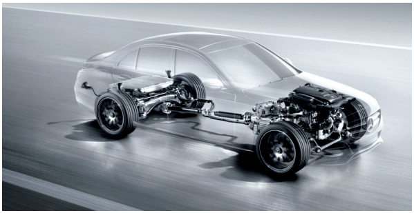 这种驱动方式的显著之处在于:动力分配装置会负责将发动机与电动机连接起来。通俗来说,并联式混合动力汽车在传统汽油车发动机加变速箱的动力单元上,又增加了一套电池组加电机的动力单元,两者一起推动车辆前进。图示为并联式混合动力汽车的典型例子梅赛德斯-奔驰C350插电版车型。