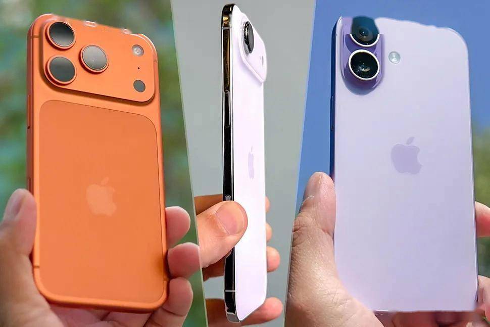 iPhone 17 的两个镜头上下摆放,Pro 版本的后置镜头组沿着设备背部伸展,三个感应元件呈三角状分布。iPhone Air 的镜头组同样沿着机身背面延伸,不过由于仅包含一个镜头,所以设备体积极度减薄。