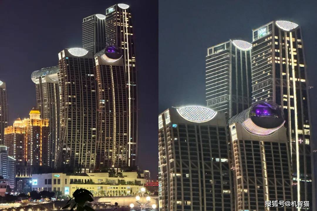 实际测试表明,由于采用了大尺寸感光元件,光线捕捉能力显著增强,即便在光线不足的环境里,也能清晰呈现人眼所见景象,暗部纹理与高光区域均表现出色。相比之下,iPhone 16 Pro拍出的影像略带偏黄倾向,建筑顶部的阴影区域并非如此明亮,经过算法过度提亮处理后,整体明暗对比度也随之提升,从而削弱了夜间应有的层次感。