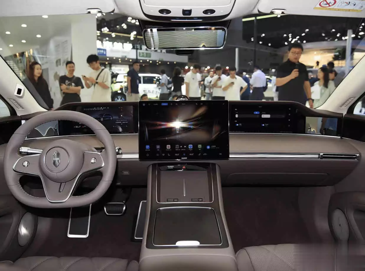 谈到车辆内部,其设计方面其实没什么特别之处,毕竟目前市场上的新能源车外观都较为相似,这款车型配备了16.1寸的中控显示屏,12.3寸的液晶仪表盘,以及12.3寸的副驾驶娱乐屏幕,相较于许多新能源车,它多出了一个副驾娱乐屏,或许是为了满足经常外出的旅行需求,考虑到长途驾驶时需要娱乐设施来消磨时间。此外这辆车配备了鸿蒙智能座舱4.0系统,在自动驾驶技术方面,它安装了华为相关配置